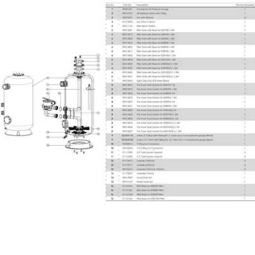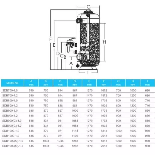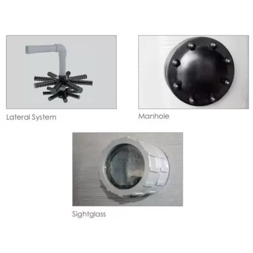 Фильтр песочный Aquaviva SDB800 - предназначен для очистки воды в бассейнах от механических взвесей. Материал корпуса фильтра изготовлен из стекловолокна, боковой (Ø158мм) и верхний люки привинчиваются гайками, встроено смотровое окно (Ø4" Sight glass, Ø158mm) в верхней части корпуса. В качестве фильтрующего элемента применяется кварцевый песок высотой засыпки 1,2 метра. Дренажное отверстие диаметром Ø1.5". Фильтр стоек к ультрафиолетовому излучению (годен для наружных установок). Благодаря фильтру вода в бассейне в течение длительного периода времени сохраняет чистоту и прозрачность. Предназначен для механической очистки воды в бассейнах объемом до 80 м³