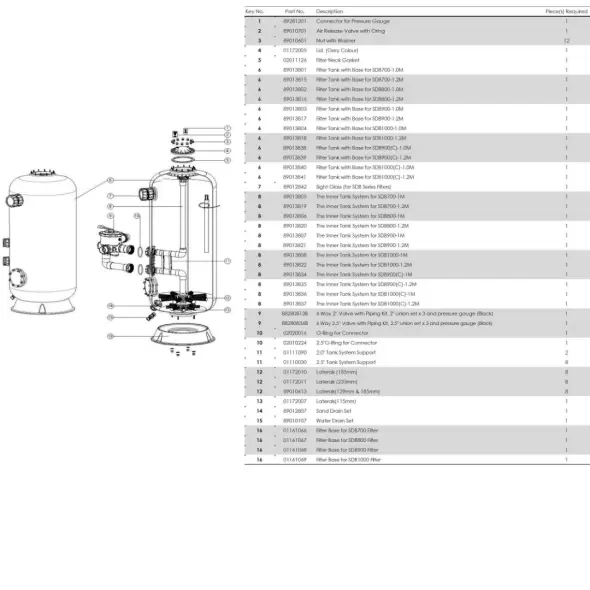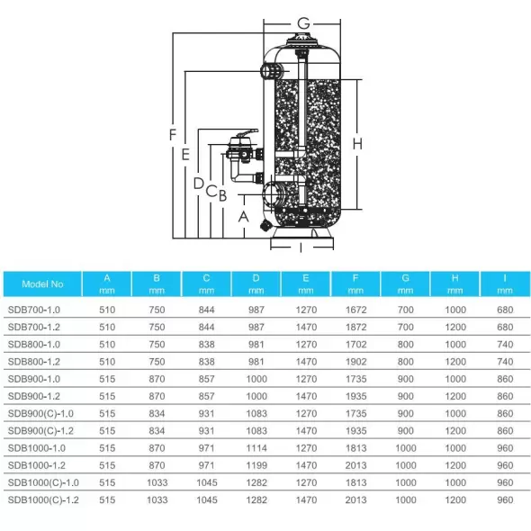 Фильтр песочный Aquaviva SDB900 - предназначен для очистки воды в бассейнах от механических взвесей. Материал корпуса фильтра изготовлен из стекловолокна, боковой (Ø158мм) и верхний люки привинчиваются гайками, встроено смотровое окно (Ø4’’) в верхней части корпуса. В качестве фильтрующего элемента применяется кварцевый песок высотой засыпки 1,2 метра. Дренажное отверстие диаметром 2 дюйма. Фильтр стоек к ультрафиолетовому излучению (годен для наружных установок). Благодаря фильтру вода в бассейне в течение длительного периода времени сохраняет чистоту и прозрачность. Диаметр фильтра 900 мм