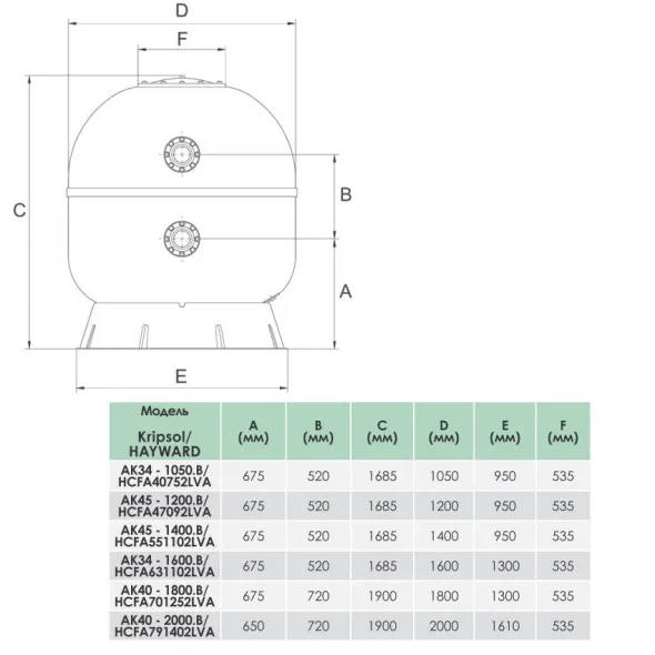 Производительность: 62 м?/часЗагрузка песка: 2450 кгТип подсоединения: боковоеДиаметр фильтра: 1400 мм