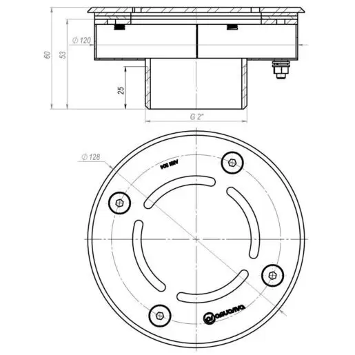 Форсунка донная Aquaviva 2", AISI 304 (D120 мм), под лайнер