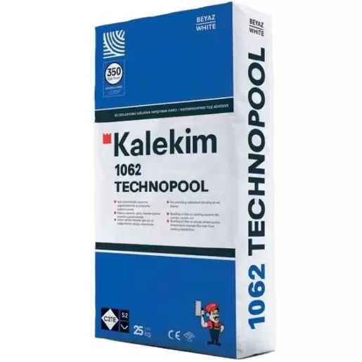 Клей для плитки с гидроизолирующими свойствами Kalekim Technopool 1062 (25 кг.) - однокомпонентный клеевой состав высшего качества, на основе цемента с гидроизолирующими свойствами. Предназначен для укладка плитки из природного камня, крупноформатного керамогранита, фарфоро-керамической плитки, а также котто, клинкеров и им подобных материалов внутри и снаружи здания. Идеально подходит для облицовки бассейнов мозаикой. Данный клей обеспечивает отличную гидроизоляцию при приклеивании материалов в помещениях с высокой влажностью, обладает высокими гидроизоляционные свойства. Имеет высокий уровень эластичности и адгезии. Не сползает при вертикальной облицовке и легко наносится.