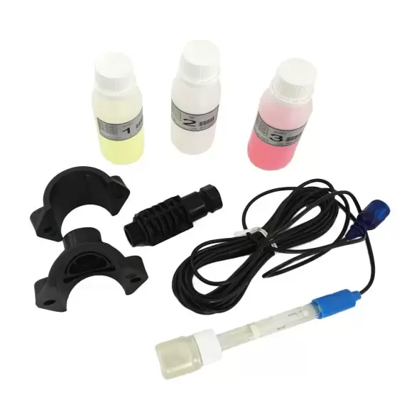 Комплект Aquaviva для измерения параметра PH воды бассейна. Содержит PH-электрод, держатель зонда PSS3, буферные растворы 4 pH-7 pH, пустую емкость для воды. Комплект используется для настройки и работы дезинфицирующего дозирующего оборудования AquaViva. Датчик в комплекте с кабелем 5 метров.
