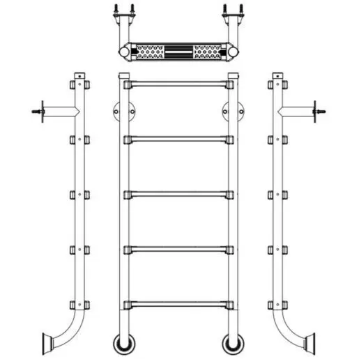 Лестница (нижняя часть, без поручней) Aquaviva BHL515-SR для удобного и безопасного спуска в бассейн. Изготовлена из полированной нержавеющей стали марки AISI-304. Лестница крепится к стенке при помощи вспомогательного крепежа с болтами. Нижняя часть лестницы упирается в стену бассейна прорезиненной заглушкой. Ступени крепятся к поручням с помощью болтов. Лестница предназначена для заглубленных бассейнов всех типов. Может использоваться отдельно, однако оптимальней всего использовать в сочетании с поручнями типа ARV, ARB, ARC.