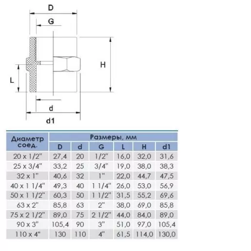 Муфта переходная ПВХ с внутр. резьбой 90x3"