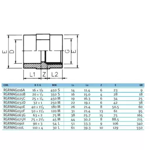 Муфта переходная ВР EFFAST d125x5" RGRMAG125M из непластифицированного поливинилхлорида PVC-U. Пр-во Италия. Изделия из ПВХ оптимальны для транспортировки жидкостей от 1 до 60°C под давлением и могут использоваться в системах водоснабжения и водоподготовки.