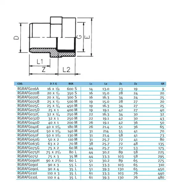 Ниппель переходной втулочное окончание ВР EFFAST d50x1-1/2" (RGRAFG050F)