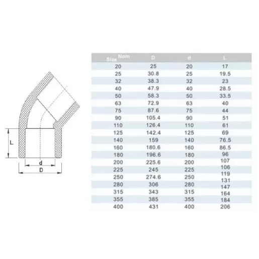 Отвод 45° из высококачественного ПВХ. Повышенная устойчивость к химии и окислению.