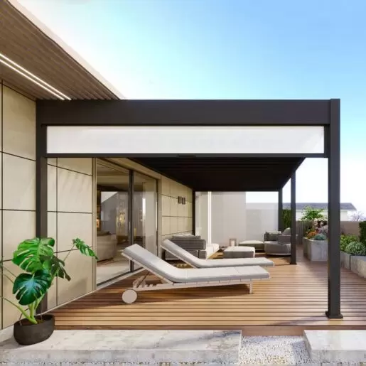 - Материал: Перголы изготавливаются из высококачественного алюминиевого профиля 6063 T5/T6, отличающегося легкостью и прочностью. Они имеют порошковое покрытие, которое устойчиво к негативным атмосферным воздействиям.