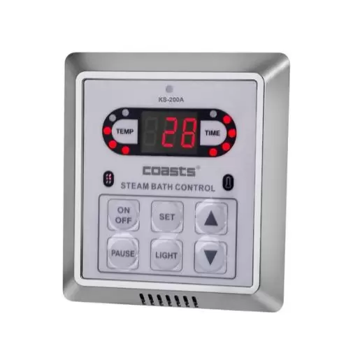 Пульт для парогенераторов Coasts. Модель KS200A. Подходит для парогенераторов серии KSA. Влагонепроницаемая сенсорная панель с цифровым LED-дисплеем. Защищенный корпус. Обеспечивает контроль над системой парогенерации, позволяет управлять температурой, светом.