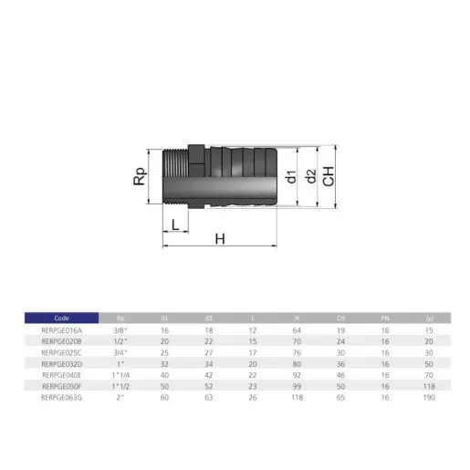 Штуцер для шланга EFFAST резьбовой d20х1/2" (RERPGE020B)