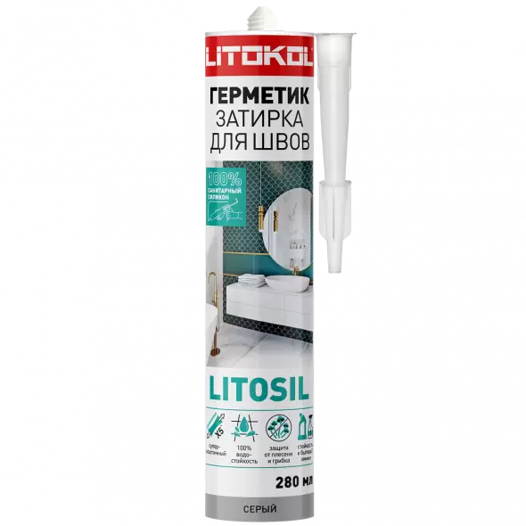 Силиконовый герметик серого цвета LITOSIL — высокоэластичный силиконовый герметик-затирка кислотного отверждения для универсального применения.