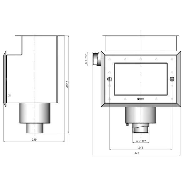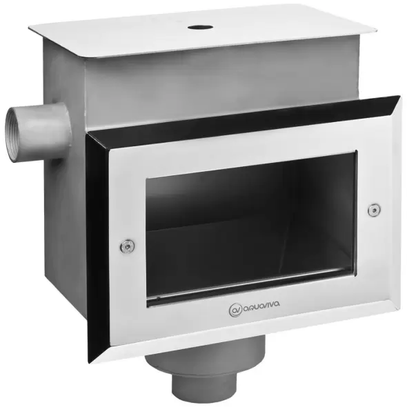 Скиммер с квадратной крышкой 25м2, 2" лайнер, AISI 304