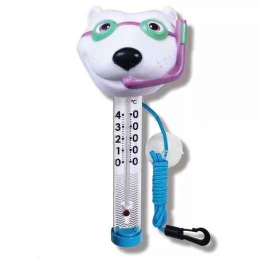 Термометр Kokido TM07DIS/C Белый медведь выполнен из высокопрочного литьевого пластика и резины. Оснащен крепежным шнуром и присоской, с помощью которых вы можете прикрепить его к лестнице или стене вашего бассейна. Имеет одну шкалу - Цельсия. Не содержит фталатов.