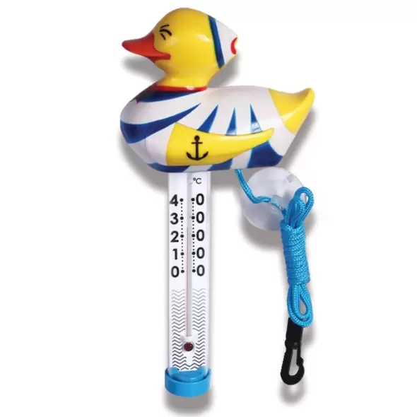 Термометр Kokido TM08CB/18 Утка "Моряк" выполнен из высокопрочного литьевого пластика и резины. Оснащен крепежным шнуром и присоской, с помощью которых вы можете прикрепить его к лестнице или стене вашего бассейна. Имеет одну шкалу - Цельсия. Не содержит фталатов.