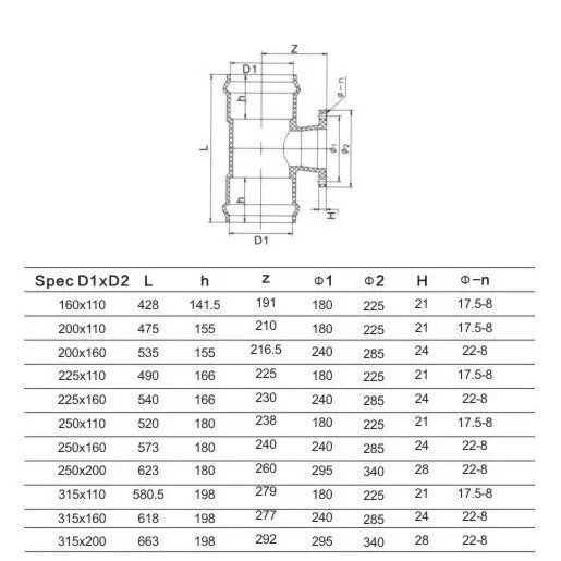 Тройник 90° раструбный переходной с ПВХ фланцем 160*110 мм