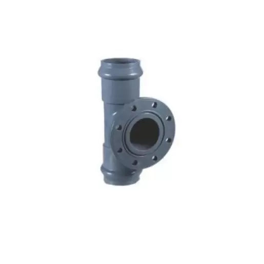 Тройник 90° раструбный переходной с ПВХ фланцем для труб и фитингов под уплотнительное кольцо. Выполнен из высококачественного ПВХ. Устойчивость к химии и окислению.