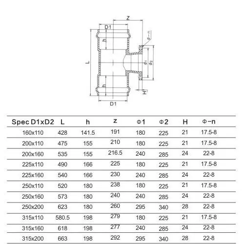 Тройник 90° раструбный переходной с ПВХ фланцем 225*160мм. Диаметр: 225х160 ммУгол: 90°Материал: ПВХ