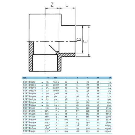 Тройник клеевой 90° EFFAST d400mm RDRTID4000 из непластифицированного поливинилхлорида PVC-U. Пр-во Италия. Изделия из ПВХ оптимальны для транспортировки жидкостей от 1 до 60°C под давлением и могут использоваться в системах водоснабжения и водоподготовки.