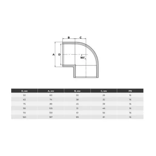 Угол клеевой 90° d32 PN16 AQUAVIVA