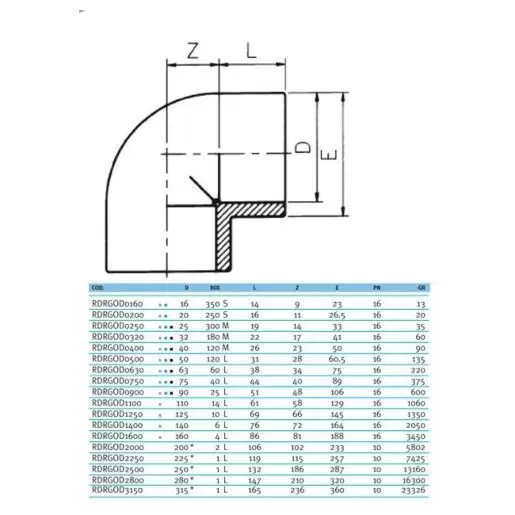 Угол клеевой 90° EFFAST d400mm RDRGOD4000 из непластифицированного поливинилхлорида PVC-U. Пр-во Италия. Изделия из ПВХ оптимальны для транспортировки жидкостей от 1 до 60°C под давлением и могут использоваться в системах водоснабжения и водоподготовки.