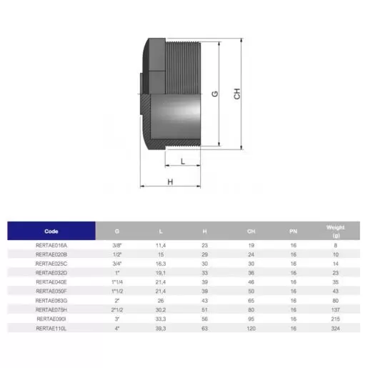 Заглушка ПВХ Effast RERTAE075H с наружной резьбой d2-1/2"