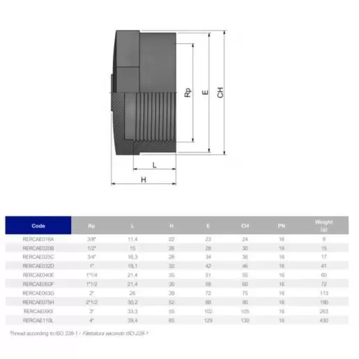 Заглушка EFFAST RERCAE с внутренней резьбой из непластифицированного поливинилхлорида PVC-U. Пр-во Италия. Изделия из ПВХ оптимальны для транспортировки жидкостей от 1 до 60°C под давлением и могут использоваться в системах водоснабжения и водоподготовки.